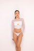 El Set Nieve es una pieza que redefine la delicadeza desde una estética moderna y poderosa. Su diseño combina transparencias limpias con una silueta estructurada que envuelve el cuerpo con sutileza y carácter.